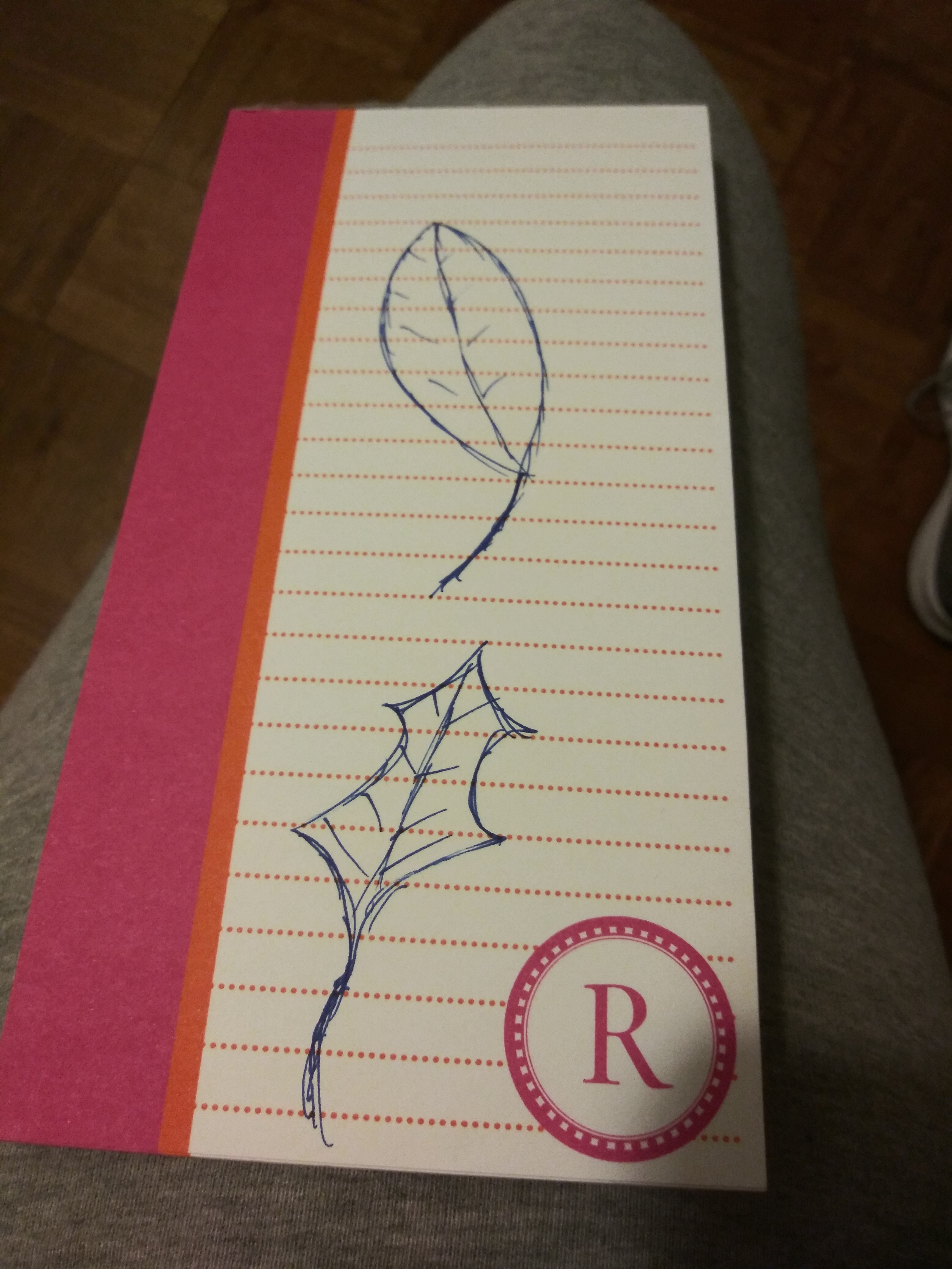 I all of a sudden had an urge to do a leaf rubbing, but I didn’t have any leaves in my house, and it’s late and dark, so I didn’t want to go outside. Instead I drew 2 leaves. I had a student once tell me artists use lots of short strokes instead of long, continuous ones. So I short-stroked my way to these 2 leaves. They may not look like much, but they’re quite an accomplishment for me.